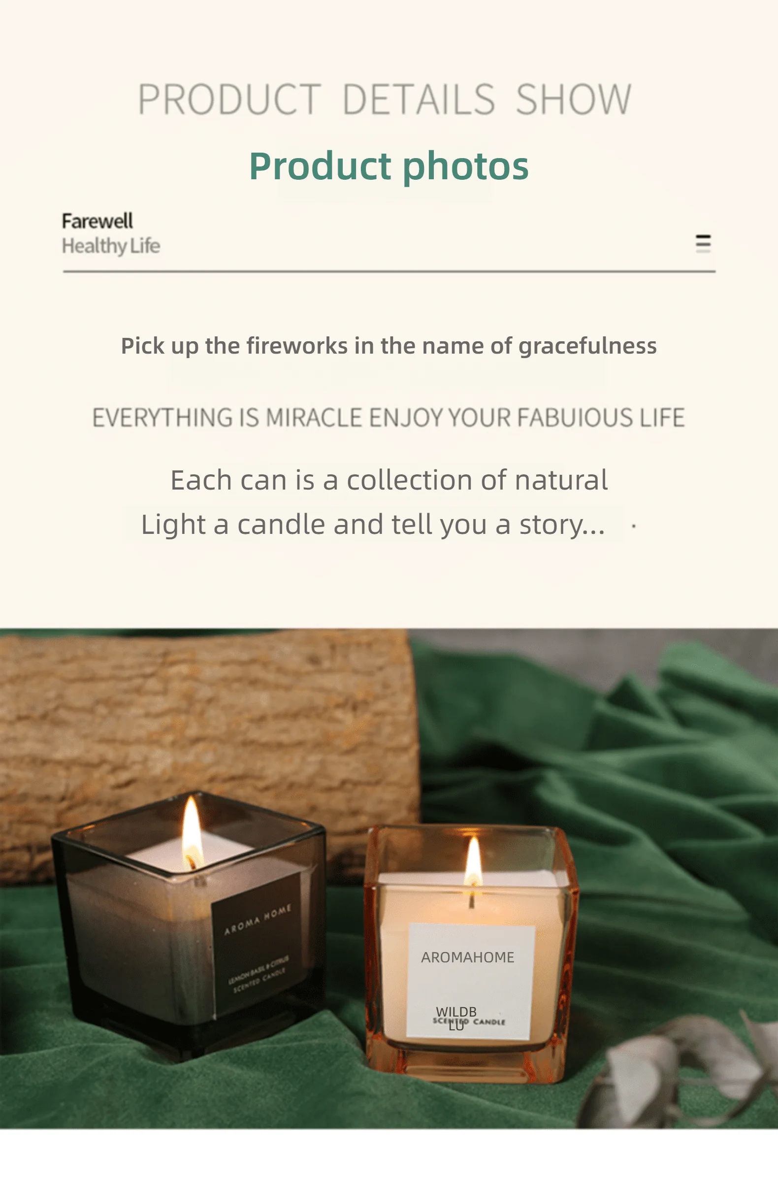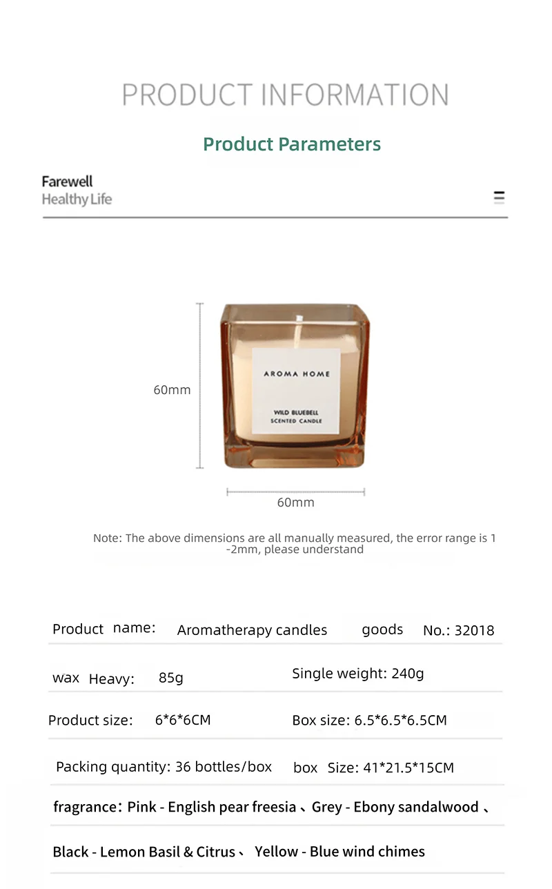 2.Do not place burning candles in flammable areas or near flammable objects.